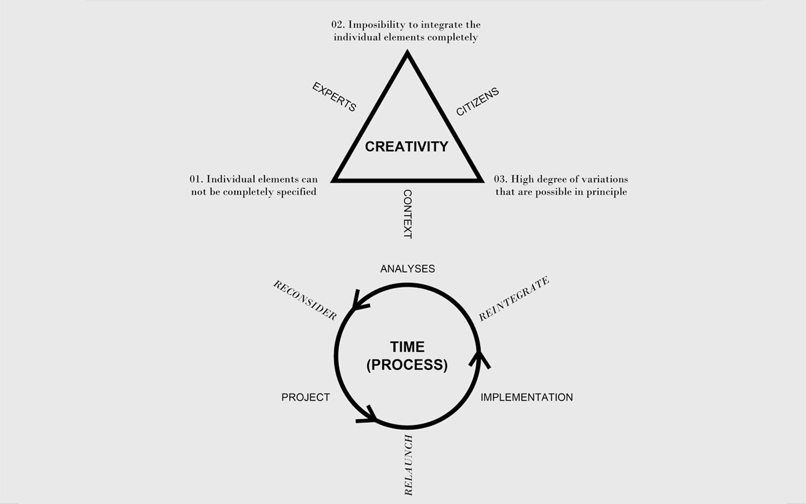 ● Methodological approach: urban transformation needs a new creativity in urban planning focusing on the process, and breaking the traditional linear sequence «analyses-proposal-implementation». They understand this creativity around a «triangle of indeterminances», as a scientific approach to complexity, integrating all the possible actors (experts, citizens, context). GdlF addresses the conflicts from a new perspective based on “reconsider-relaunch-reintegrate”.