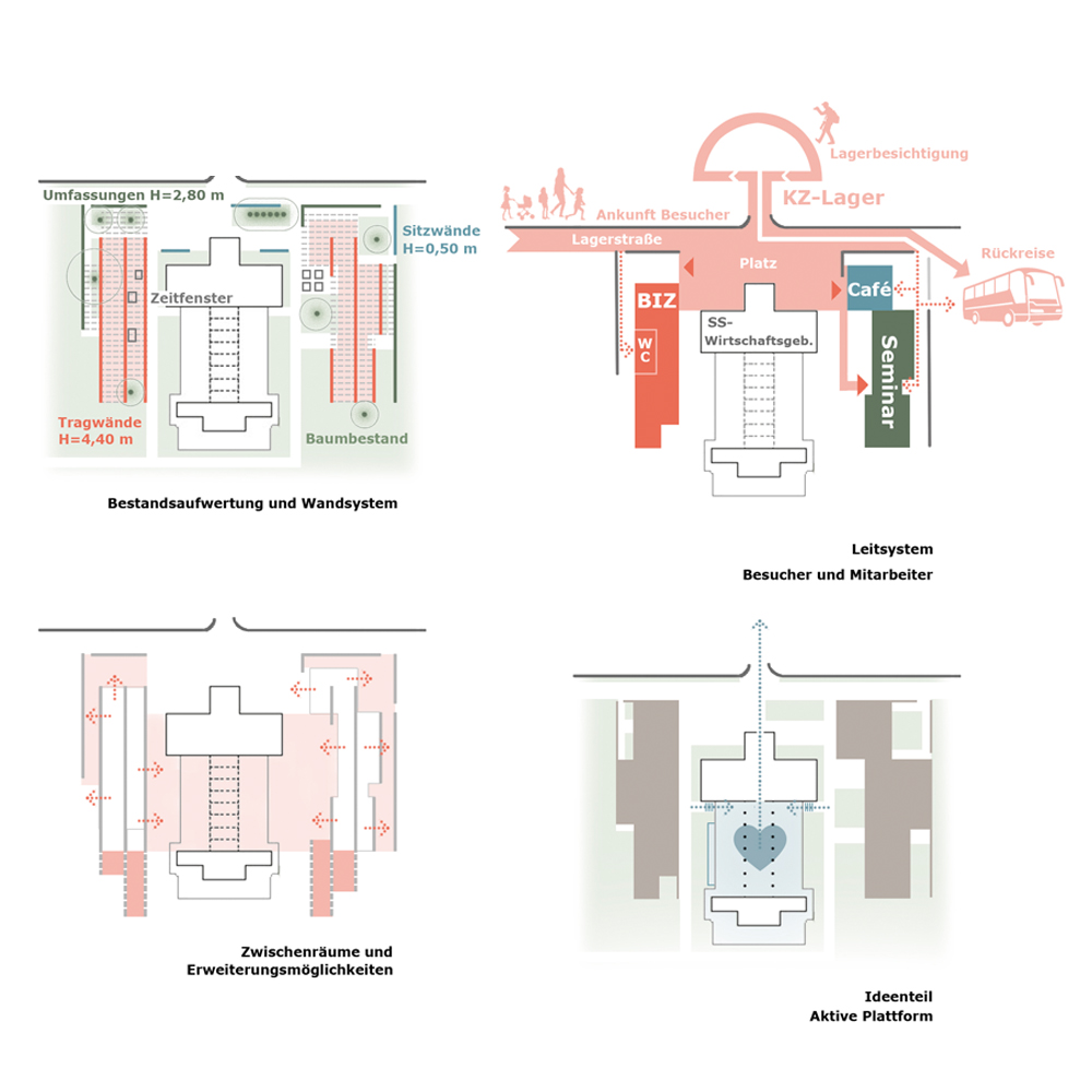 Program: Neubau BIZ Besuchsinformationszentrum und Seminargebäude, Visitor Center, Reasearch Centre, Museum and Landscape -new access to Sachsenhausen Camp-. Programmatic vision for the refurbishment of the existing building of the SS (SS-Wirtschaftsgebäude)